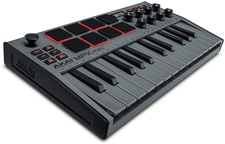 Akai Professional MPK Mini MK3 – 25 Key USB MIDI Keyboard Controller With 8 Backlit Drum Pads, 8 Knobs, Music Production Software and Native Instruments Sound Package (NKS Integration), Grey