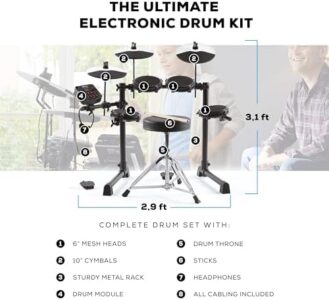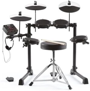 Alesis Drums Debut Kit – Electric Drum Kit with 4 Quiet Mesh Electronic Pads, 120 Sounds, Drum Sticks, Stool, Headphones, and Lessons