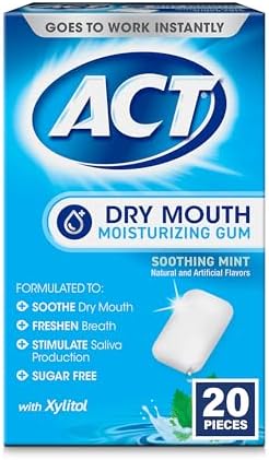 ACT Dry Mouth Moisturizing Gum, 20 Pieces, With Xylitol, Sugar Free Soothing Mint